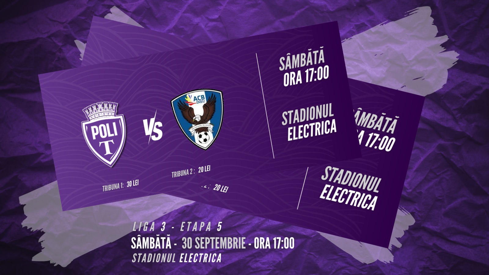 Meciul are loc sâmbătă, 30 septembrie, ora 17 pe Stadionul Electrica (Strada Renașterii, nr. 41), aceste bilete sunt disponibile în format digital. Prețul unuia este de 30 de lei pentru accesul la Tribuna 1 și 20 de lei pentru accesul la Tribuna a 2-a.