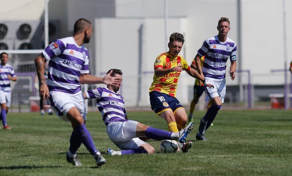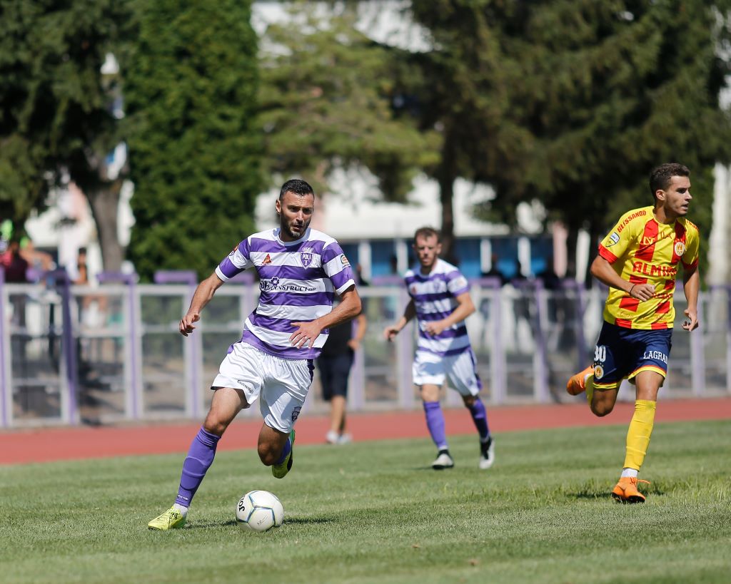 Jucătorii pregătiţi de Tavi Benga au lovit primii în jocul desfăşurat pe o vreme foarte călduroasă. Era minutul 11 când Alin Manea a concretizat din careu cu piciorul centrarea venită din banda dreaptă, de la Munteanu. Primul marcator al întâlnirii a resimţit o problemă medicală câteva minute mai târziu şi a fost înlocuit în minutul 18 de Claudiu Pamfile, noua achiziţie a Politehnicii. Oaspeţii au avut mai multă posesie în finalul primei reprize şi în startul celei de-a doua părţi iar în minutul 56 A. Macriţchii a egalat cu un şut la colţul lung după o respingere greşită a defensivei alb-violete.
